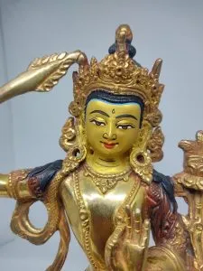 Manjushri symbolizes“God of Divine Wisdom” whose worship confers mastery of the Dharma, retentive memory, mental perfection and eloquence. Manjushree is also one of the forms of Bodhisattvas and he symbolizes wisdom.